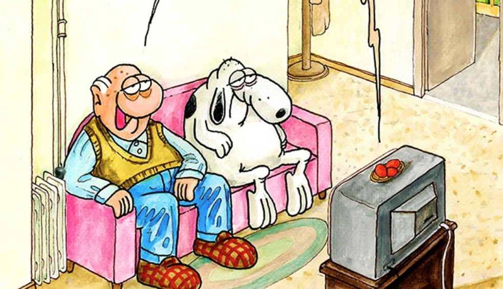 Καλημέρα μάς εύχεται για ακόμη μία φορά ο Αρκάς. Στη σημερινή εικόνα, ο γνώριμος ήρωας του σκιτσογράφου κάθεται χαλαρά στον καναπέ με τον σκύλο του, παρακολουθώντας τηλεόραση. Κάποια στιγμή ακούγεται δυνατά από την οθόνη το πασχαλινό «Χριστός Ανέστη!».