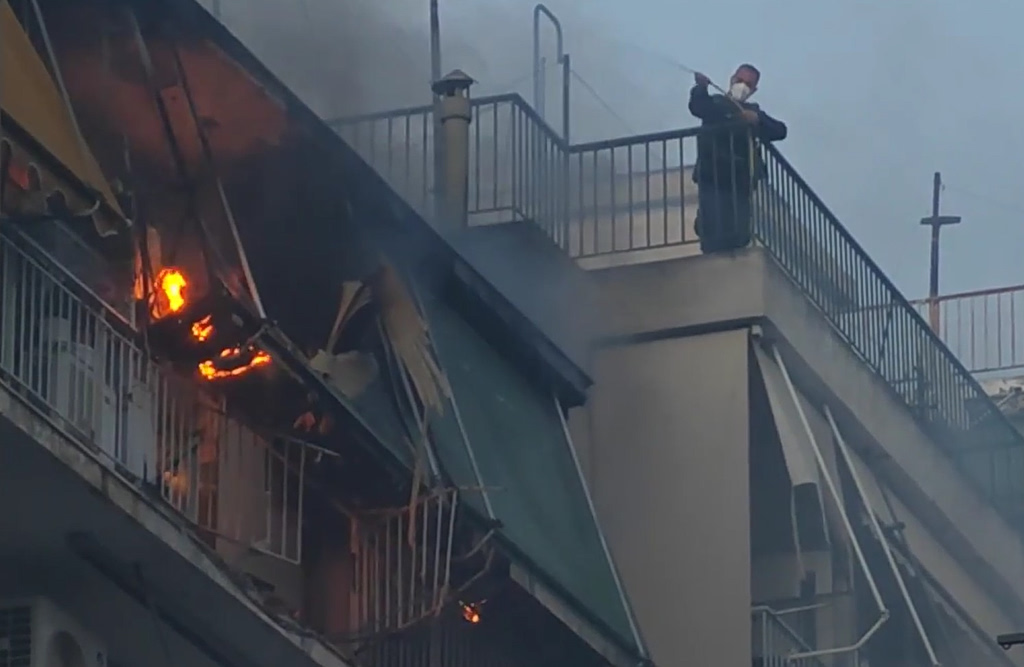 Στο διαμέρισμά διαμένουν δύο ηλικιωμένοι οι οποίοι, απομακρύνθηκαν από την πολυκατοικία έχοντας τις αισθήσεις τους.