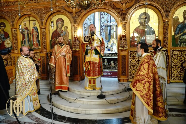 Κατά την Αρχιερατική Θεία Λειτουργία συλλειτούργησαν με τον Επίσκοπο ο π. Ιγνάτιος Ιωαννίδης και ο π. Χριστοφόρος Λιόλιος, Ιερατικός Προϊστάμενος του Ναού.