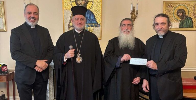 Αστόρια: Σε ένα όμορφο παράδειγμα φιλανθρωπίας και αφοσίωσης στην ελληνική παιδεία, ο Αρχιμανδρίτης κ. Ιερόθεος Μακρόπουλος, μαζί με την πιστή κοινότητα των Αγίων Αναργύρων της Ελληνορθόδοξης Εκκλησίας στο Washington Heights, δώρισε το ποσό των 20.000 δολαρίων στον Αρχιεπίσκοπο Αμερικής κ. Ελπιδοφόρο προς ενίσχυση του Ελληνοαμερικανικού Σχολείου Αγίου Δημητρίου Αστόριας.