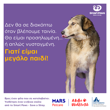 Η καμπάνια της Ειδικής Γραμματείας για την Προστασία Ζώων Συντροφιάς εστιάζει σε έναν συγκεκριμένο στόχο: την υιοθεσία 90 ενήλικων σκύλων από το άλλοτε δημοτικό κυνοκομείο Σπάρτης, το οποίο πλέον διαχειρίζεται το Smart Paws – Save A Stray. Και κυρίως, επιχειρεί να αλλάξει μια βαθιά ριζωμένη αντίληψη.