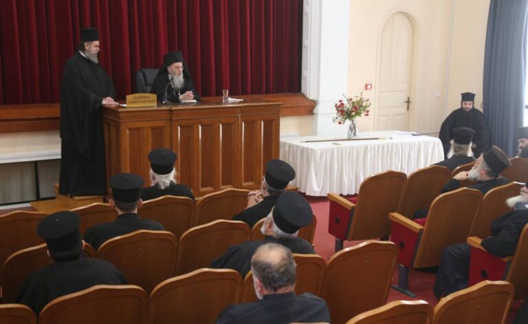 Κατόπιν, ο Μητροπολίτης κάλεσε τον αρχιμανδρίτη π. Πολύκαρπο Θεοφάνη να ενημερώσει τους ιερείς για την 35η Πανορθόδοξη Συνδιάσκεψη για θέματα αιρέσεων και παραθρησκείας, που πραγματοποιήθηκε στην Κατερίνη, από 4 έως 6 Νοεμβρίου 2025, με θέμα: «Νεοπαγανισμός, όψεις και πρακτικές», την οποία παρακολούθησε ως εκπρόσωπος της Ιεράς Μητρόπολής μας. Ο π. Πολύκαρπος παρουσίασε περιληπτικά τις εισηγήσεις που έγιναν στη συνδιάσκεψη και κατόπιν διάβασε αναλυτικά τα πορίσματά της. Τέλος, ο γενικός αρχιερατικός επίτροπος, π. Θωμάς Βαμβίνης, αναφέρθηκε σε ορισμένα διοικητικά θέματα.
