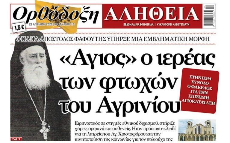 Στην Ορθόδοξη αλήθεια που κυκλοφορεί –Σε μια εποχή όπου η πίστη δοκιμάζεται και οι κοινωνικές ανάγκες πληθαίνουν, η «Ορθόδοξη Αλήθεια» συνεχίζει να αναδεικνύει πρόσωπα, γεγονότα και μαρτυρίες που φωτίζουν τον δρόμο της ελπίδας και της προσφοράς.