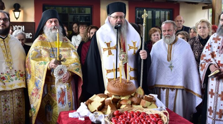 Μετά την Θεία Λειτουργία ευλογήθηκαν οι άρτοι της αρτοκλασίας και διανεμήθηκε το κέρασμα σε όλους τους προσκυνητές. Εκκλησιάστηκαν ο αξιότιμος κ. Γεώργιος Μανώλης, δήμαρχος Τεμπών, περιστοιχισμένος από αντιδημάρχους και δημοτικούς συμβούλους. Το πρόσωπο όμως που περισσότερο έλαμπε από χαρά για τα γινόμενα, ήταν ο ευσεβής πατέρας του π. Ραφαήλ, Ιωάννης Ευαγγέλου, προς τον οποίον ο Μητροπολίτης εξέφρασε ευχές υπέρ μακροημερεύσεως και βαθύτατης ικανοποιήσεως, βλέποντας το παιδί του να αναδεικνύεται εργάτης του αμπελώνα του Κυρίου.