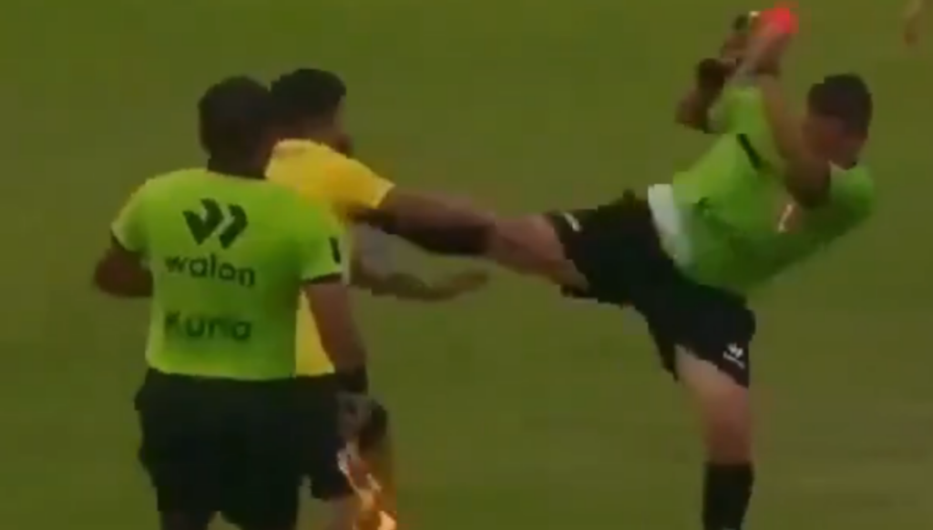 Ένα στιγμιότυπο από τον αγώνα ανάμεσα στη Σπορτ Ουακίγια και τη Μαγδαλένα CEDEC, στο πλαίσιο του Copa Perú, κάνει τον γύρο του κόσμου για έναν εντυπωσιακό ακραίο λόγο. Ο διαιτητής Λουίς Αλέγκρε «ξάπλωσε» βοηθό προπονητή με μια κανονική κίνηση καράτε! Η ένταση ήταν ήδη υψηλή στο παιχνίδι και, με το σκορ στο 2-1, ο Αλέγκρε ήταν έτοιμος να δείξει κόκκινη κάρτα. Κάποιος από τον πάγκο διαφώνησε έντονα: εισέβαλε στον αγωνιστικό χώρο κρατώντας ένα άδειο μπουκάλι νερού, με πρόθεση να επιτεθεί στον διαιτητή. Ο Αλέγκρε όμως είχε αντιληφθεί την κατάσταση και δεν έμεινε απαθής. Αντέδρασε άμεσα, απαντώντας με μια κλωτσιά καράτε που έριξε τον αντίπαλό του στο έδαφος! Το περιστατικό όξυνε ακόμη περισσότερο το κλίμα και ο διαιτητής αποφάσισε τελικά να διακόψει οριστικά την αναμέτρηση! Δείτε το video: EL ÁRBITRO KARATECA Luis Alegre iba a ser agredido en el partido entre Sport Huaquilla y Magdalena CEDEC por la Copa Perú, pero…