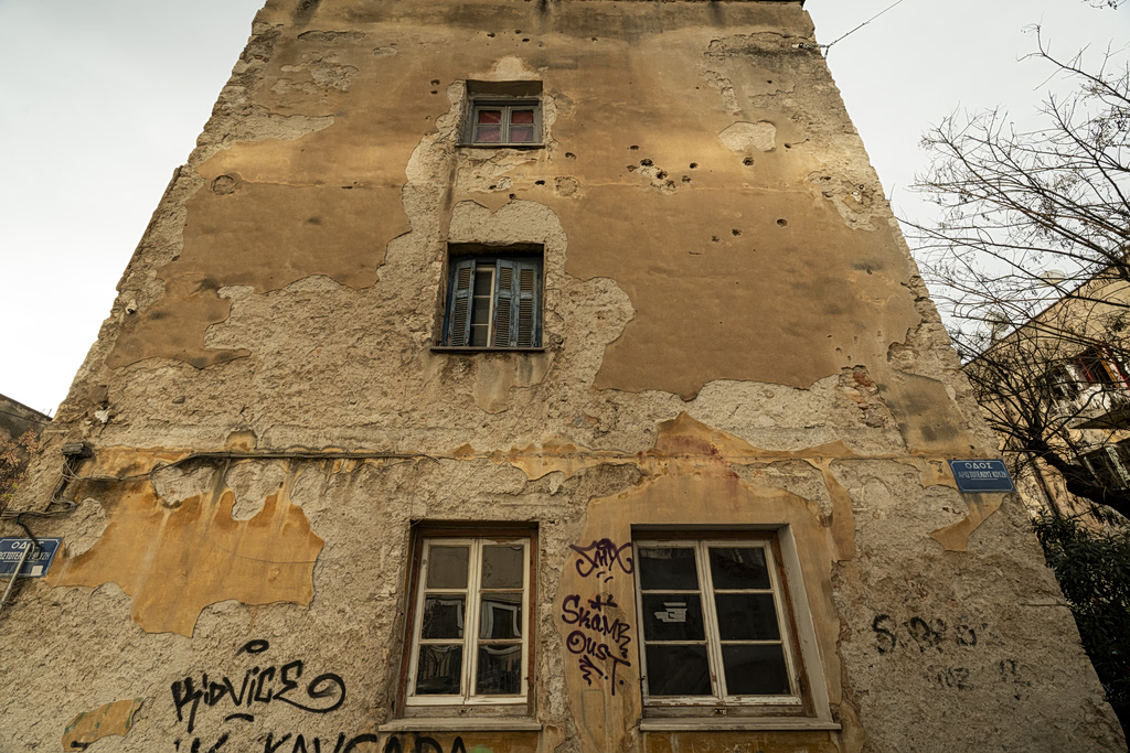 Τέταρτο μπλοκ: στον τοίχο είναι ορατές οι σφαίρες από τις μάχες μεταξύ ΕΑΜ–ΕΛΑΣ και Άγγλων και Ταγμάτων Ασφαλείας κατά τα Δεκεμβριανά του 1944. (Νίκος Πηλός)