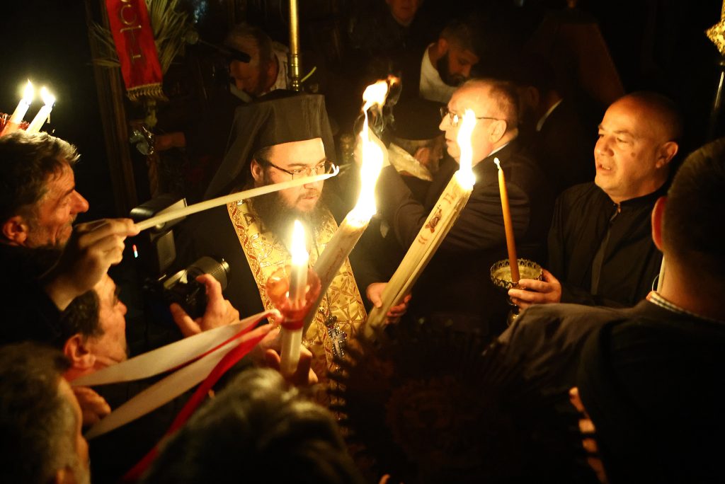 Το Άγιο Φως έφτασε στην Αθήνα και μεταφέρθηκε από το αεροδρόμιο «Ελευθέριος Βενιζέλος» στο Μετόχι του Παναγίου Τάφου, στην Πλάκα, από τον έξαρχο του Παναγίου Τάφου, αρχιμανδρίτη Ιερώνυμο.