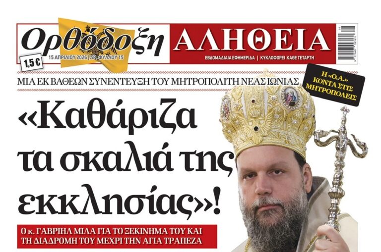 Στα περίπτερα την Τετάρτη 15 Απριλίου κυκλοφορεί η Ορθόδοξη Αλήθεια με θέματα πίστης, παράδοσης και σύγχρονου προβληματισμού.